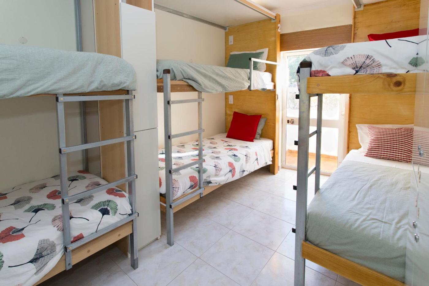 Cama em Dormitório Misto com 6 Camas. Esta cama está situada num dormitório com comodidades para preparar chá e café, um pátio e utensílios de cozinha.