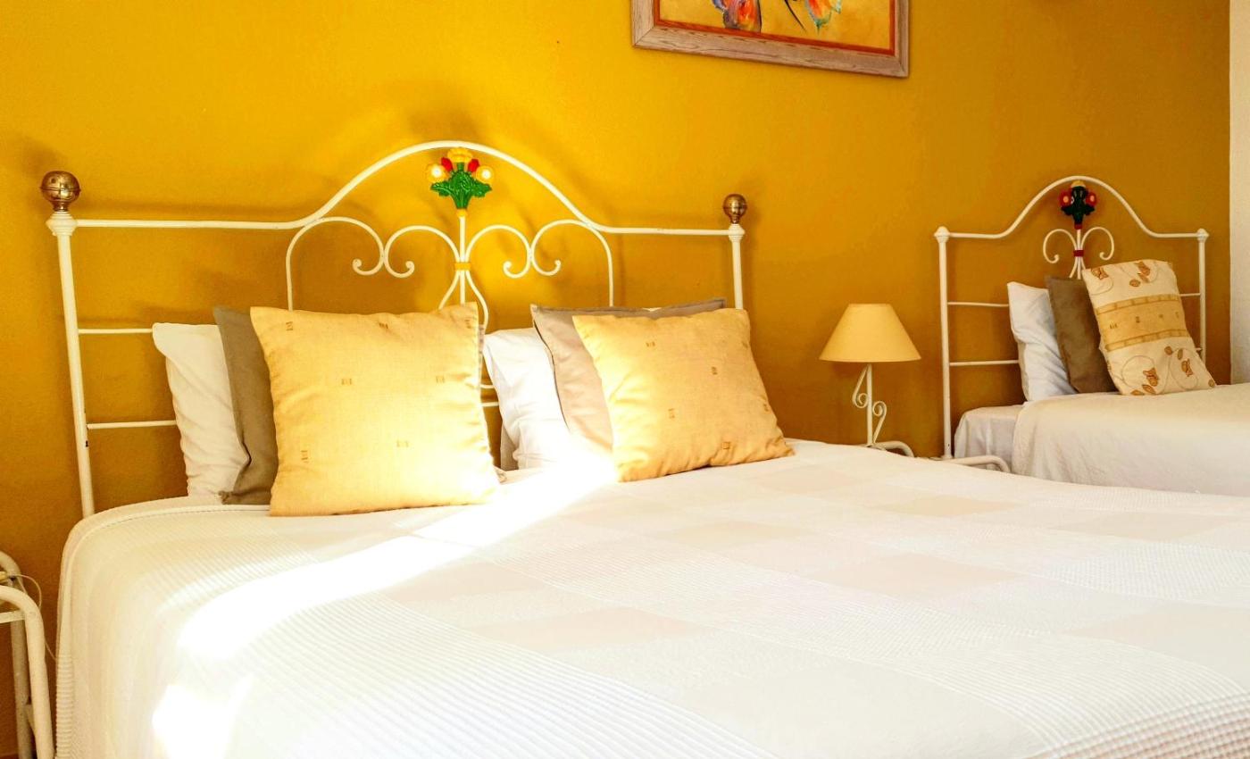 Quarto Triplo. This triple room features a pool with a view. In the kitchenette, guests will find a stovetop, kitchenware, a microwave and a tea and coffee maker. The triple room features air conditioning, a private entrance, a terrace with garden views as well as a private bathroom boasting a bath. The unit has 2 beds.