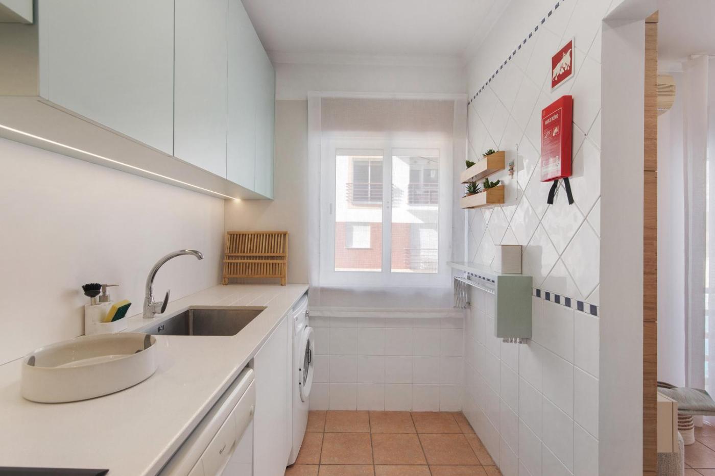 Este apartamento com ar condicionado tem 1 quarto, uma sala de estar, uma cozinha totalmente equipada com máquina de lavar louça e máquina de café, e 1 casa de banho com chuveiro e produtos de higiene pessoal gratuitos. Toalhas e roupa de cama são providenciadas neste apartamento.
